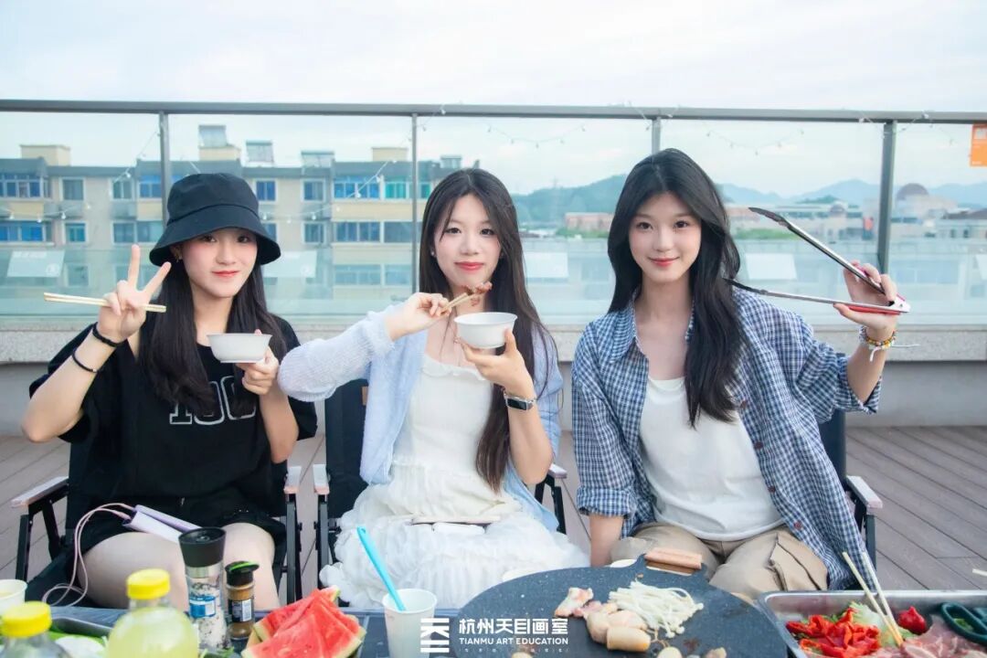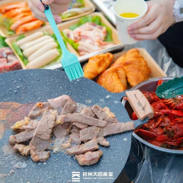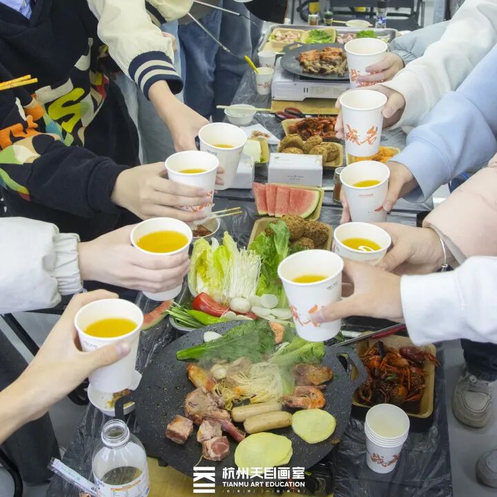 游学期间画室会组织各类丰富的活动,游园会、非遗手作体验,还有烤肉和火锅盛宴,调动学生学习积极性,劳逸结合!